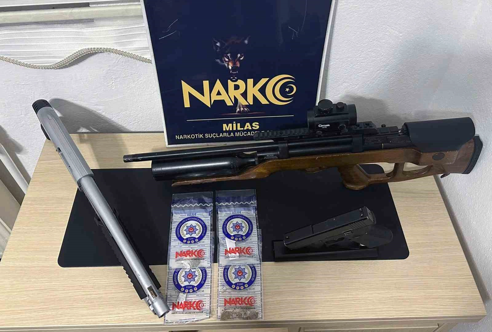 Operasyonlarda, 621 Gram esrar maddesi, 23,92 Gram skunk maddesi, 1,78 Gram metamfetamin maddesi, 15 adet Sentetik Ecstasy, 18 adet Sentetik Ecza, tabanca, pompalı tüfek ve havalı tüfek ele geçirildi.