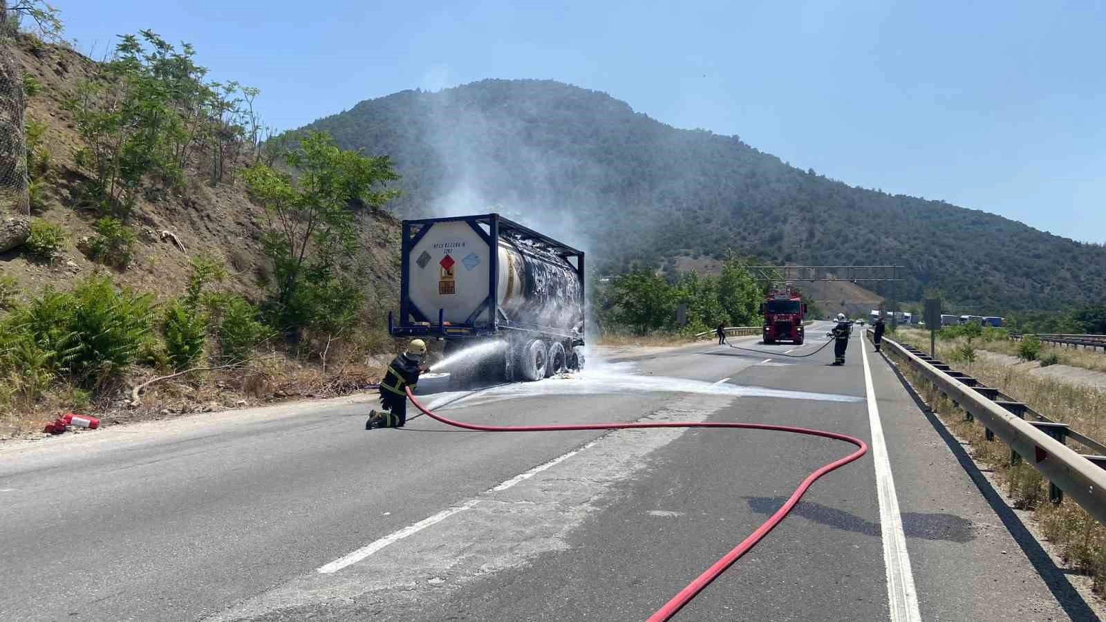 Alınan bilgilere göre, Bilecik-Sakarya-İstanbul karayolunda seyir halindeki Ahmet S. idaresindeki 34 PG 0585 plakalı tır, Tüneller Mevkiinde bir anda alev aldı. Yangına Bilecik Belediyesine ait 3 adet itfaiye aracı anında müdahale etti. İçinde reçine yüklü olduğu öğrenilene tırda alevler biraz daha çoğalsaydı aracın patlama ihtimali olduğu öğrenildi. Polis çevrede muhtemel bir patlaya karşı önlem alırken, itfaiye ekipleri yangını söndürdükten sonra uzun süre soğutma işlemi yaptı.