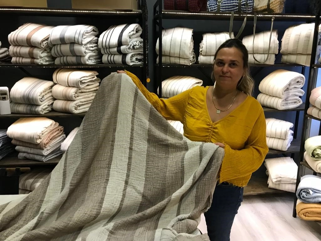 Hava sıcaklığının mevsim normalinin üzerinde seyir etmesinin ardından vatandaşlar yeniden rahat kıyafetleri tercih etmeye başladı. Vatandaşlar tercihi olan müslim kumaşlarda ise siparişlere yetişmekte güçlük çekiliyor. Müslim kumaş üreticisi olan Melda Mustak, "1960'lı yıllarda bebek bezi olarak üretildikten sonra hazır bezlerin yaygınlaşmasıyla müslin kumaşı değerini kaybetti. Bizde unutulan bu kumaşı dokumaya aldık. Yüzde yüz pamuk olan müslin bezinden kadın kıyafetleri, yatak örtüleri, peştamal ve ev tekstilinde kullanıyoruz. Otomatik tezgahlarda pamuk ipliğinden ham olarak dokunduktan sonra boyahane ve yıkama işlemlerinin ardından mamul hale geliyor. Ardından konfeksiyonda yatak örtüsü, kadın ve erkek giysileri, peştamal, bornoz ve ev tekstili olarak, evde ve giyimde kullanılabilecek bütün ürünleri yapabiliyoruz. Müslim kumaşının tercih edilmesinin sebebi, pamuk olması, rahat olması, terletmemesi, gerek örtü olarak gerekse de kıyafet olarak kullanılabilmesidir" dedi.