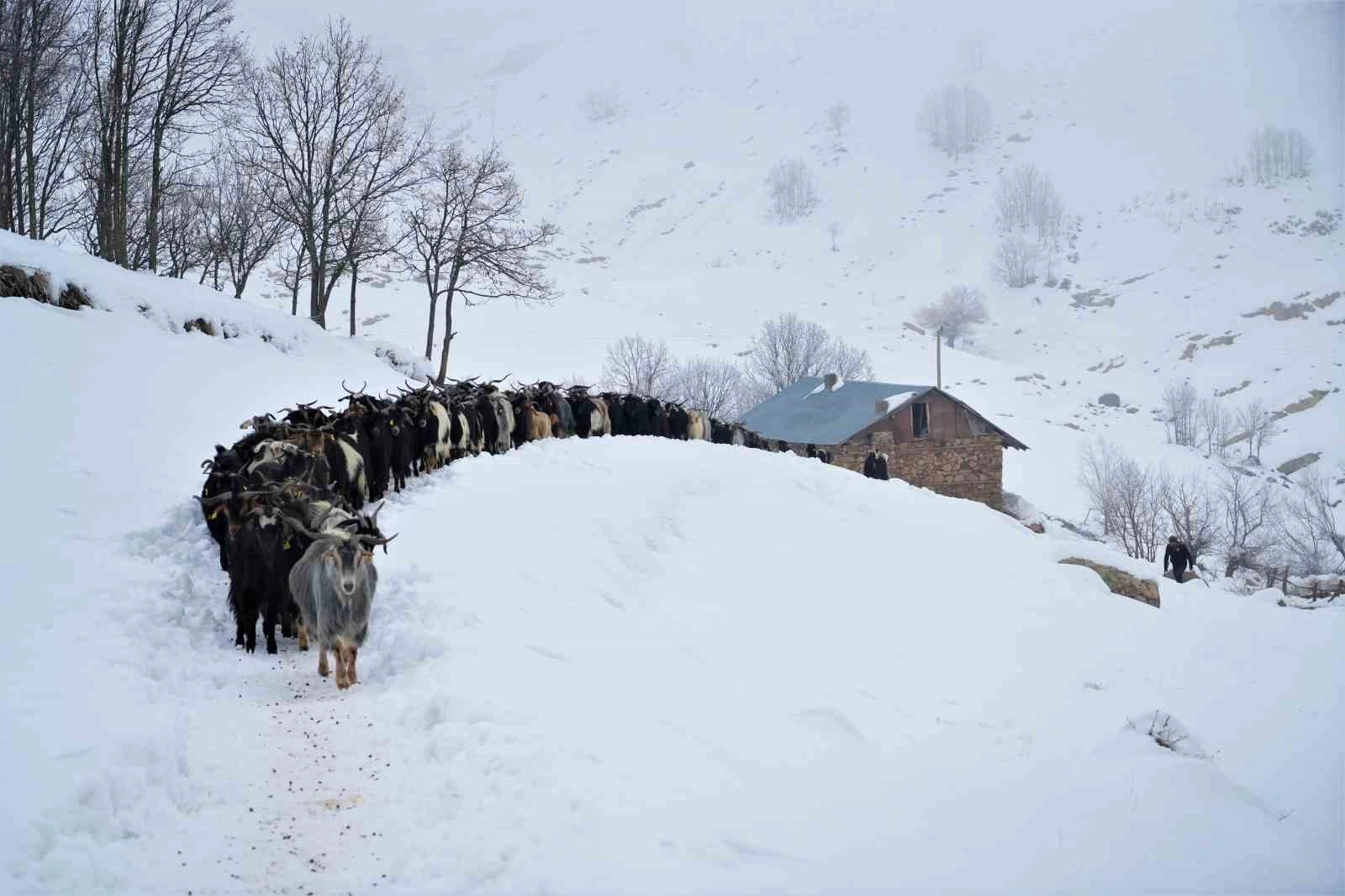 Muş'un Karabey köyüne bağlı Kamiş mezrasında yüksek rakımlı köylerde besicilik yapan vatandaşlar, kış aylarının zorlu şartlarına rağmen hayvanlarının bakımını aksatmadan sürdürüyor. Sabahın erken saatlerinde uyanan çobanlar, önce sobalarını yakarak güne başlıyor. Sağlam bir kahvaltının ardından keçilere arpa ve saman vererek onların da yem ihtiyaçlarını karşılayan besiciler, hayvanlarını meşe dallarının yoğun olduğu bölgelere kar üzerinde götürerek besliyor. Keçilerin karda hareket kabiliyetinin yüksek olması, bu süreçte besicilerin işini bir nebze de olsa kolaylaştırıyor.