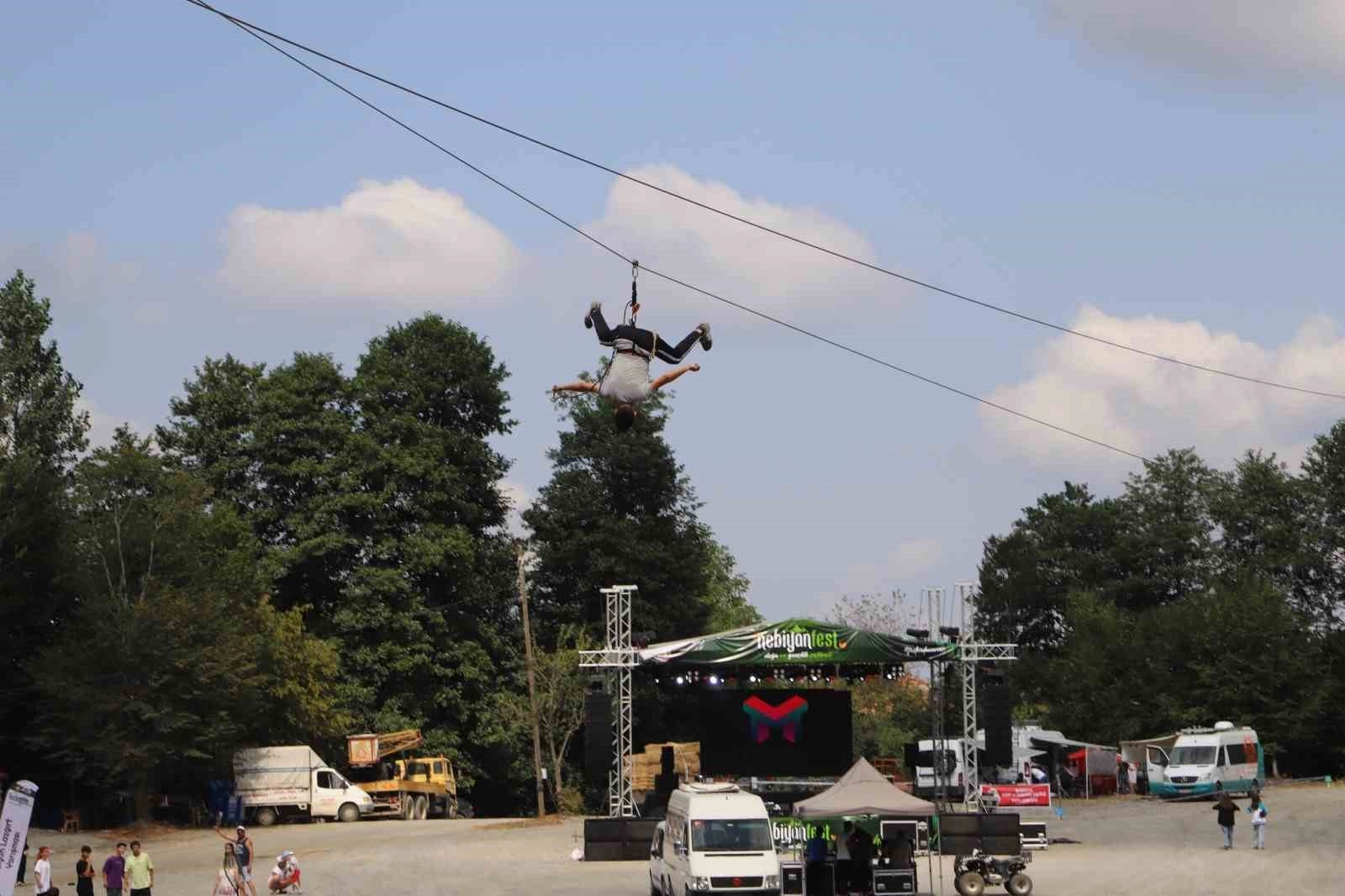 Öte yandan festivalin heyecan verici bir parçası da zipline deneyimi oluyor. Cesaretini toplayan ziyaretçiler, yüksek bir platformdan aşağıya doğru süzülerek adrenalin dolu bir yolculuğa çıkıyorlar. Bu deneyim, katılımcıları maceraya sürüklüyor. Ayrıca, festivalin müzik dolu bir yanı da var. Ünlü şarkıcı Resul Dindar, sahne alarak katılımcılara unutulmaz bir konser deneyimi sunmaya hazırlanıyor.