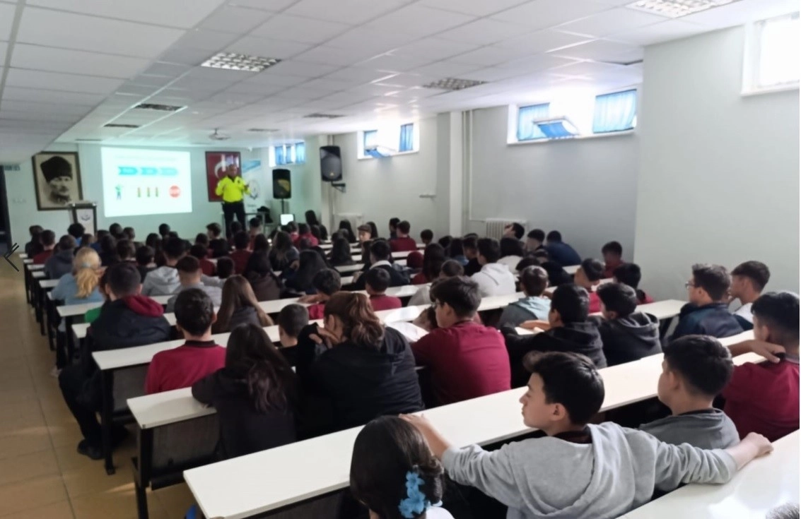Trafik Denetleme Şube Müdürlüğü personelleri tarafından ise 110 öğrenciye trafik güvenliği, karşıdan karşıya geçiş noktaları ve emniyet kemeri kullanmanın faydaları hakkında bilgilendirme çalışması yapıldı.