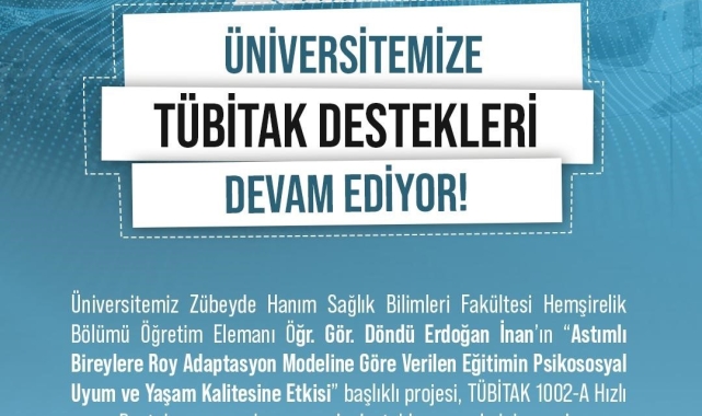 Astım tanısı ile izlenen bireylerin roy adaptasyon modeli kullanılarak hazırlanan eğitim ile hastalığa ve tedaviye yönelik olumlu bir tutum geliştirmelerinin ve fiziksel, psikolojik ve sosyal işlevlerinin iyileştirilmesinin hedeflendiği proje kapsamında, aynı zamanda astım kontrolünün sağlanması ve sürecin iyi yönetilerek yaşam kalitesinin artırılması da amaçlanıyor. Bununla beraber semptomların minimize edilmesi, hastaların hastalığa yönelik davranışlarını geliştirerek daha sağlıklı bir yaşam sürmelerine yardımcı olmaları da projenin hedefleri arasında yer alıyor. Proje yürütücüsü Öğretim Görevlisi Döndü Erdoğan İnan, astım hastalarının yaşam kalitesini artırmayı amaçlayan çalışmalarıyla ilgili olarak şunları söyledi; "Astım, yalnızca fiziksel sağlığı değil, bireylerin psikososyal uyumlarını da etkileyen bir hastalıktır. Projemizde Roy Adaptasyon Model'ini kullanarak hastalara yönelik bir eğitim programı geliştirmeyi ve bu sayede hastalığa uyumu artırarak yaşam kalitesini yükseltmeyi hedefliyoruz. TÜBİTAK'ın desteği, bu alandaki çalışmalarımıza önemli bir katkı sağlayacaktır."