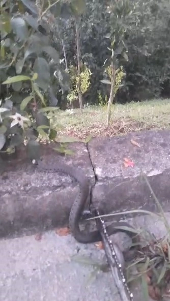 Bu yıl yurt genelinde olduğu gibi Karadeniz Bölgesi'nde yılan görülme vakaları artarken, son olarak Trabzon'un Of ilçesinde bir fındık bahçesinde görülen yılan cep telefonu kameralarına yansıdı.