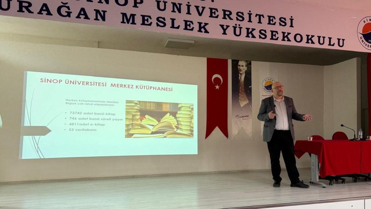 Sinop Üniversitesi Kütüphane ve Dokümantasyon Daire Başkanlığı personeli Öğr. Gör. Altuğ Abuşoğlu tarafından Durağan Meslek Yüksekokulu öğrencilerine yönelik kütüphane oryantasyon eğitimi gerçekleştirildi.