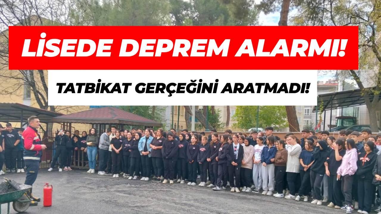 Tatbikat senaryosu gereği okulda deprem alarmının ardından öğrenciler hızlı ve düzenli bir şekilde okul binasını tahliye etti.