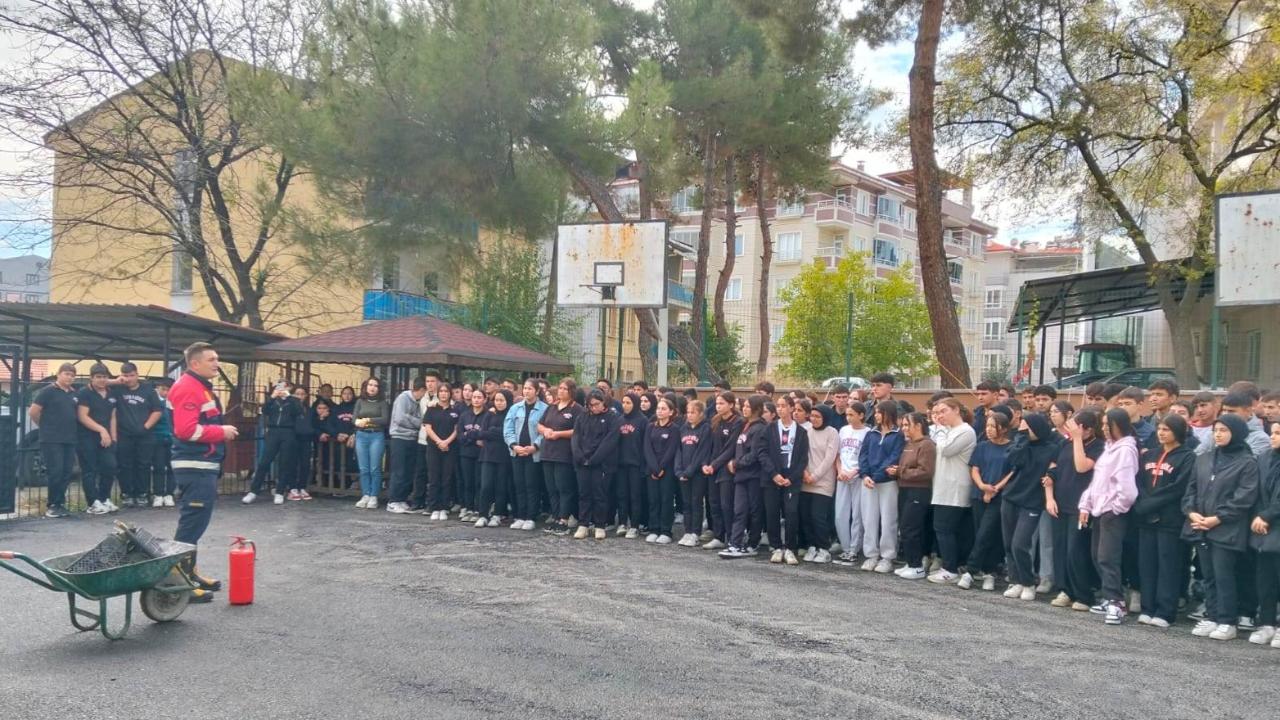 Etkinlik, öğrencilerin katılımıyla yapılan yangın söndürme tatbikatı ile sona erdi.