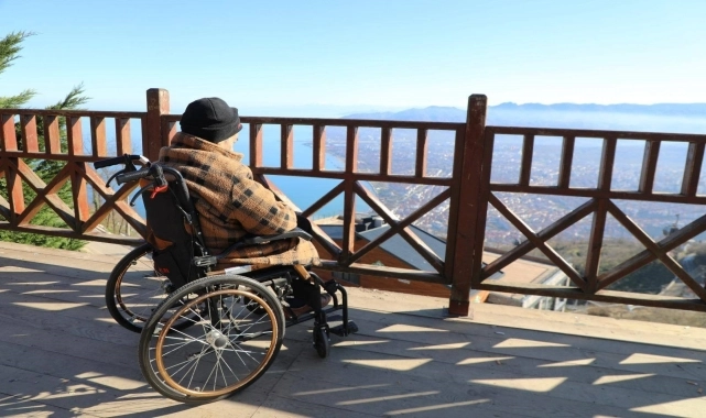 Ordu'da 90 yaşındaki yürüme engelli Yılmaz Doğan, Büyükşehir Belediyesinin "engelsiz taksi" hizmetinden faydalanarak 530 rakımlı Boztepe'den şehri izleme imkanı buldu.
