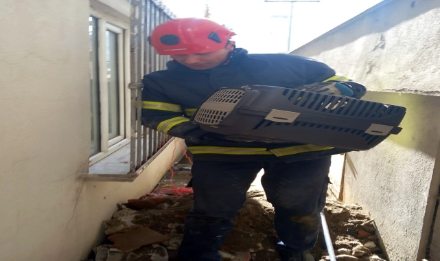 Ordu'da sahipsiz köpeklerden kaçarken iki bina arasındaki boşluğa düşen kedi, itfaiye ekiplerince kurtarıldı.