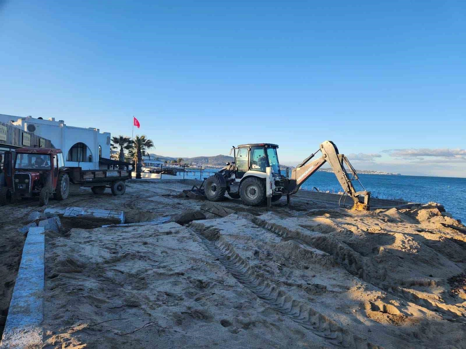 Burhaniye Belediyesi Yapı Kontrol ve Fen İşleri Müdürlüğü ekipleri, Ören Mahallesi'nde bulunan işletmenin deniz kenarına çektiği beton setleri yıkarak kıyıların, herkesin eşit ve serbest olarak kullanabileceği alanlar olmasına yönelik çalışmalarını hızla tamamlayarak sahil şeridini eski şekline kavuşturdu.