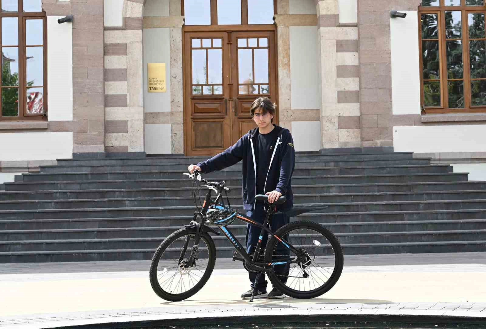 Konya Büyükşehir Belediye Başkanı Uğur İbrahim Altay, kavşaktaki ters dönen güzergah tabelasını uzun uğraşlar sonucu düzelten 17 yaşındaki liseli Yusuf Dağtaş'a bisiklet hediye etti.