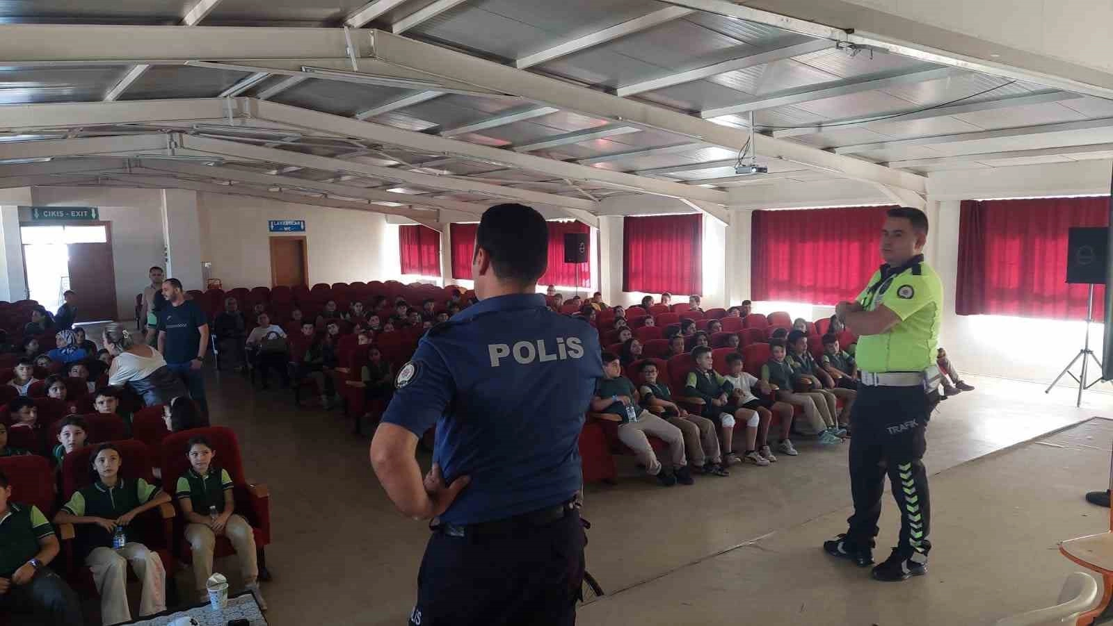 Aydın'ın Karacasu ilçesinde öğrencilerin güvenli bir yaşam sürmeleri ve çevrelerindeki tehlikelerden korunmaları amacıyla ortaokul öğrencilerine yönelik eğitim semineri düzenlendi. Seminere katılan öğrenciler, meslek tanıtımının yanı sıra kişisel güvenlik, suçtan korunma yöntemleri, güvenli internet kullanımı ve güvenli trafik eğitimi gibi konularda bilgilendirildi. Emniyet yetkilileri genç bireylerin bilinçlenmesinin önemine vurgu yaparak bu tür seminerlerin düzenli olarak devam edeceğini belirtti.