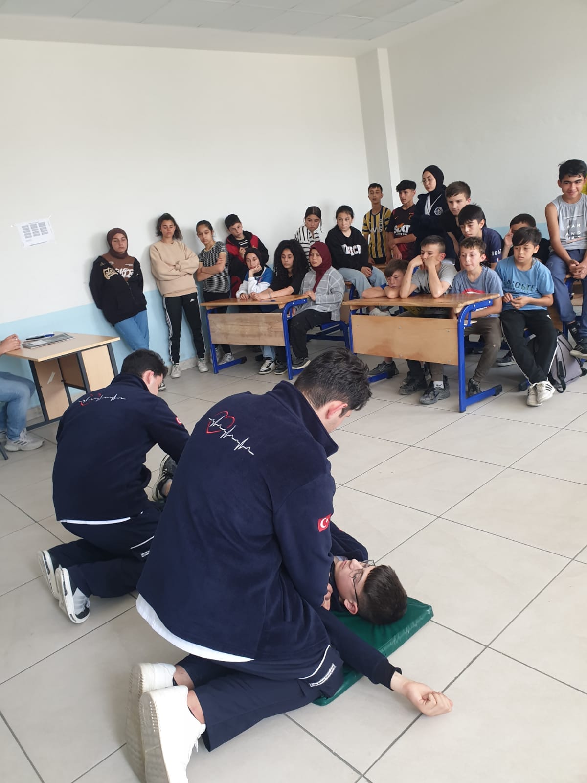 Nursevil Yaylacı, Gülay Aslan ve Özden Yağcı Gül isimli öğretmenlerin koordinatörlüğünde gerçekleştirilen seminerlerde, ortaokul öğrencilerine okulda karşılaşabilecekleri acil durumlarla nasıl mücadele edebilecekleri konusunda eğitim verildi.