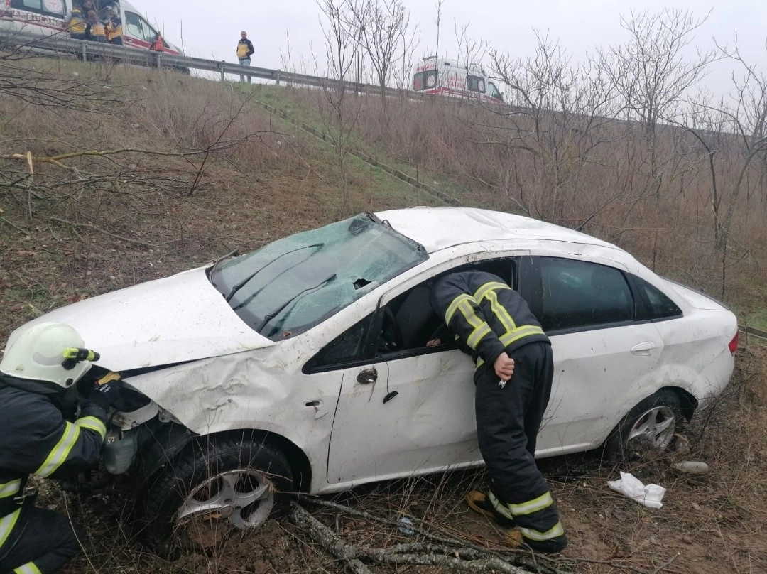 Kırklareli'nin Lüleburgaz ilçesinde kontrolden çıkan otomobil, yol kenarındaki yeşil alana uçtu. Ağaçlara çarparak duran otomobildeki 1 kişi yaralandı.