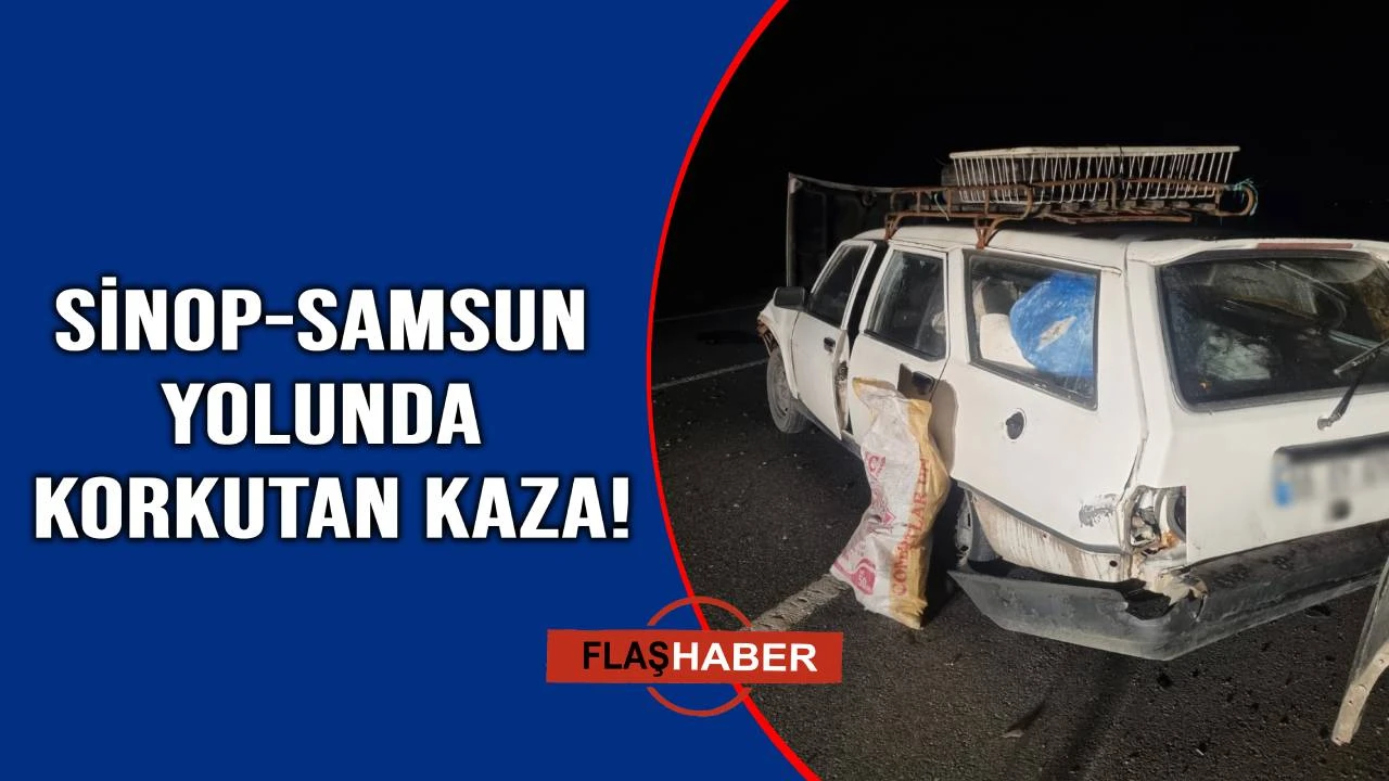 Samsun-Sinop yolunda meydana gelen trafik kazasında, kontrolden çıkan otomobil bariyerlere çarptı.