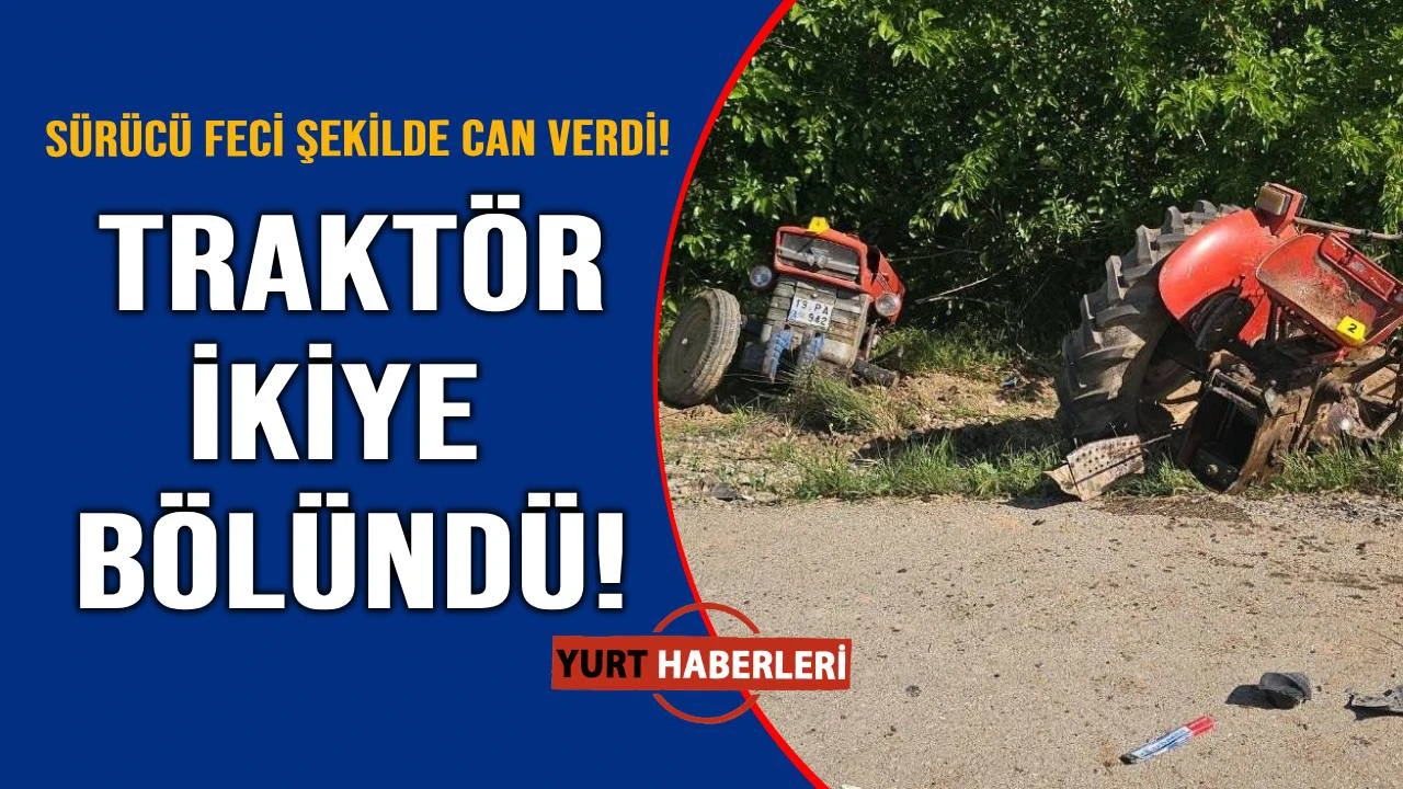 İzmir'in Ödemiş ilçesinde meydana gelen trafik kazasında aracın çarptığı traktör ikiye ayrılırken, sürücüsü kaza yerinde hayatını kaybetti.