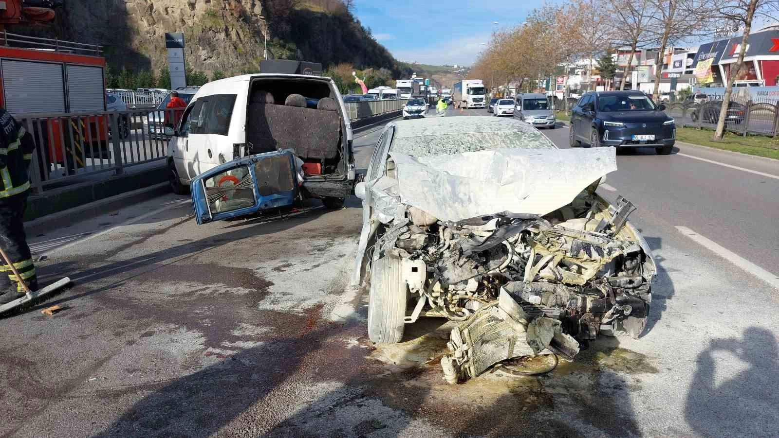 Samsun'da otomobilin lastiği patlayan hafif ticari araca arkadan çarparak hurdaya döndüğü kazada sürücü yaralandı.