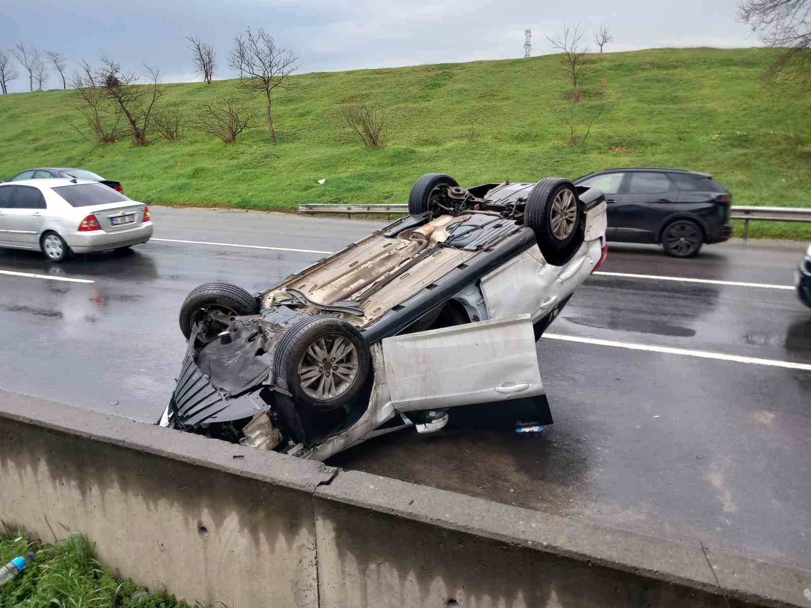 Kaza, Kemalettin Mahallesi Çorlu Çevre yolu üzerinde meydana geldi. Ergene istikametine seyreden S.D. idaresindeki otomobil, sağanak yağışın devam ettiği saatlerde sürücüsünün direksiyon hakimiyetini kaybetmesi sonucu bariyerlere çarparak takla attı.