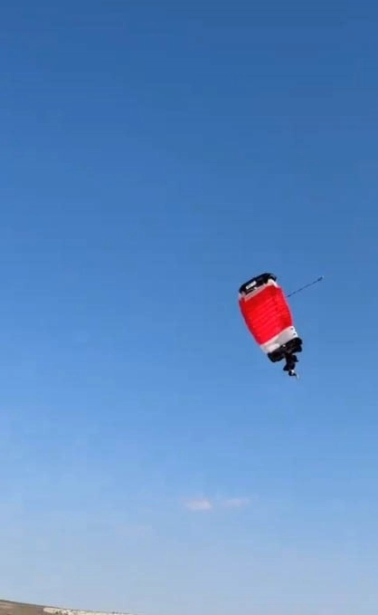 Paraşütçünün yere sert iniş yaptığı anlar, cep telefonu kamerası ile saniye saniye kaydedildi.