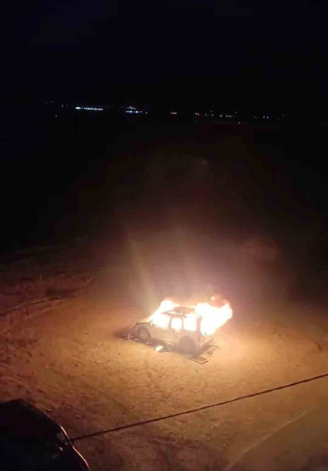 Bursa'nın Karacabey ilçesinde park halindeki bir araç alev alev yandı. İtfaiye ekiplerince alevler söndürülürken, araç kullanılamaz hale geldi.