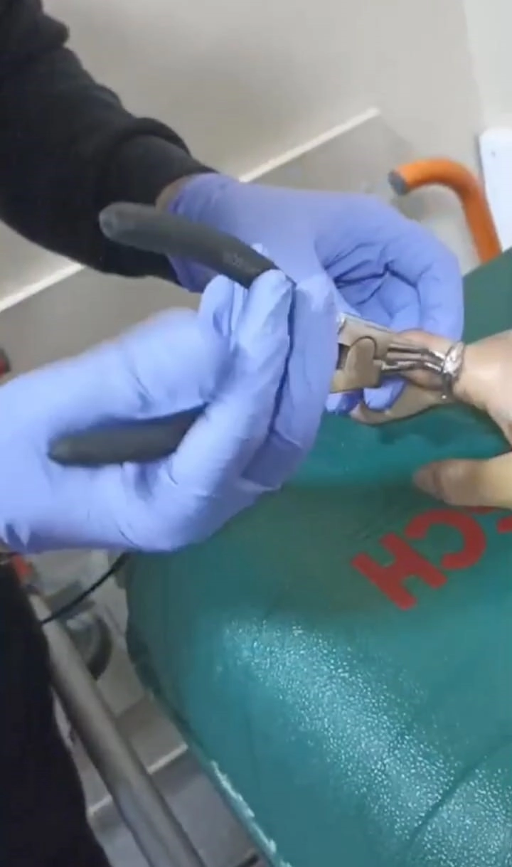 Şanlıurfa'da genç kızın parmağına sıkıştırdığı yüzük itfaiye ekipleri tarafından kesilerek çıkartıldı.