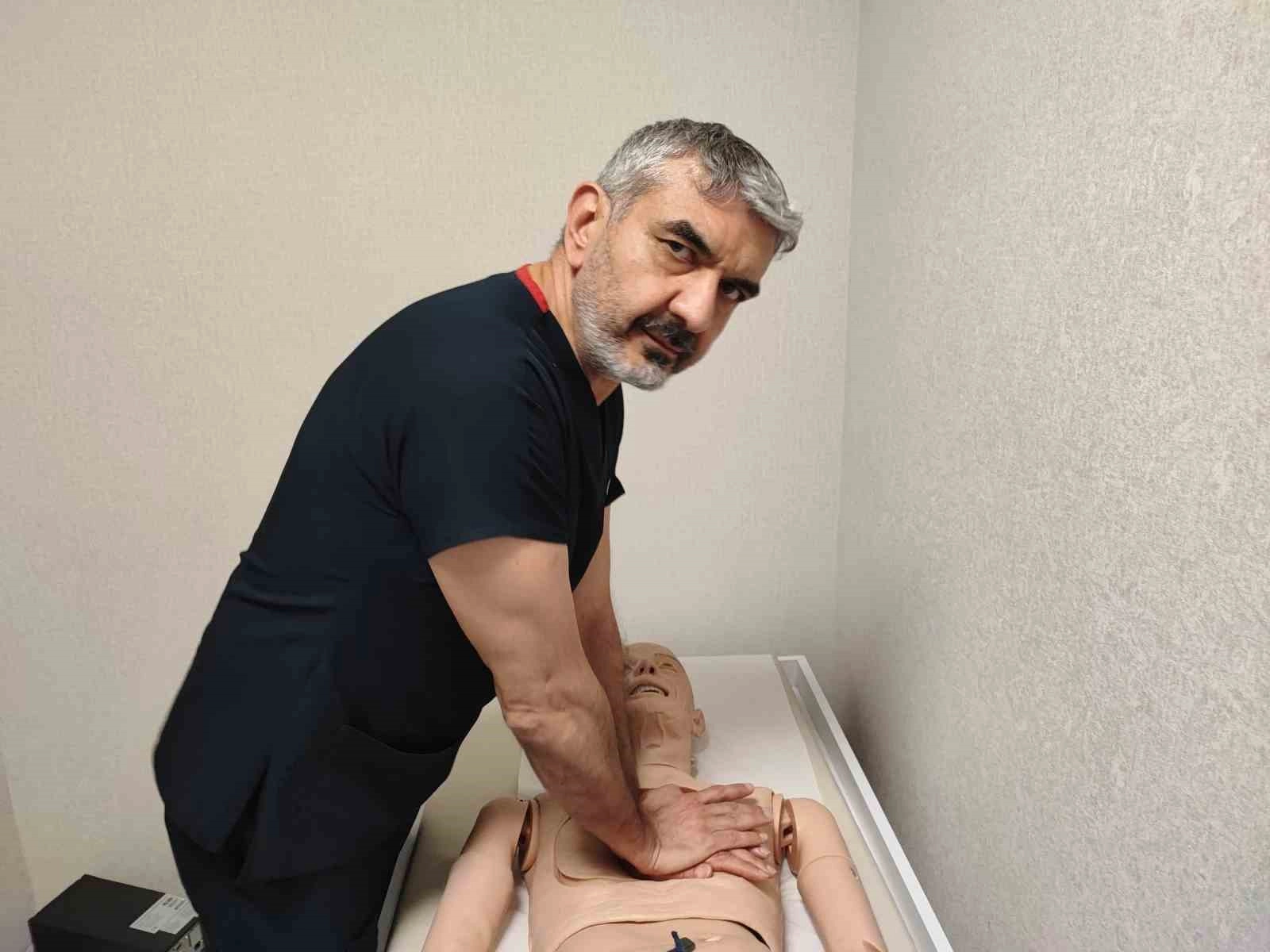 Akpınar, bir cansız manken üzerinde de kalp masajının tekniklerini ve nasıl yapılması gerektiğini anlattı.