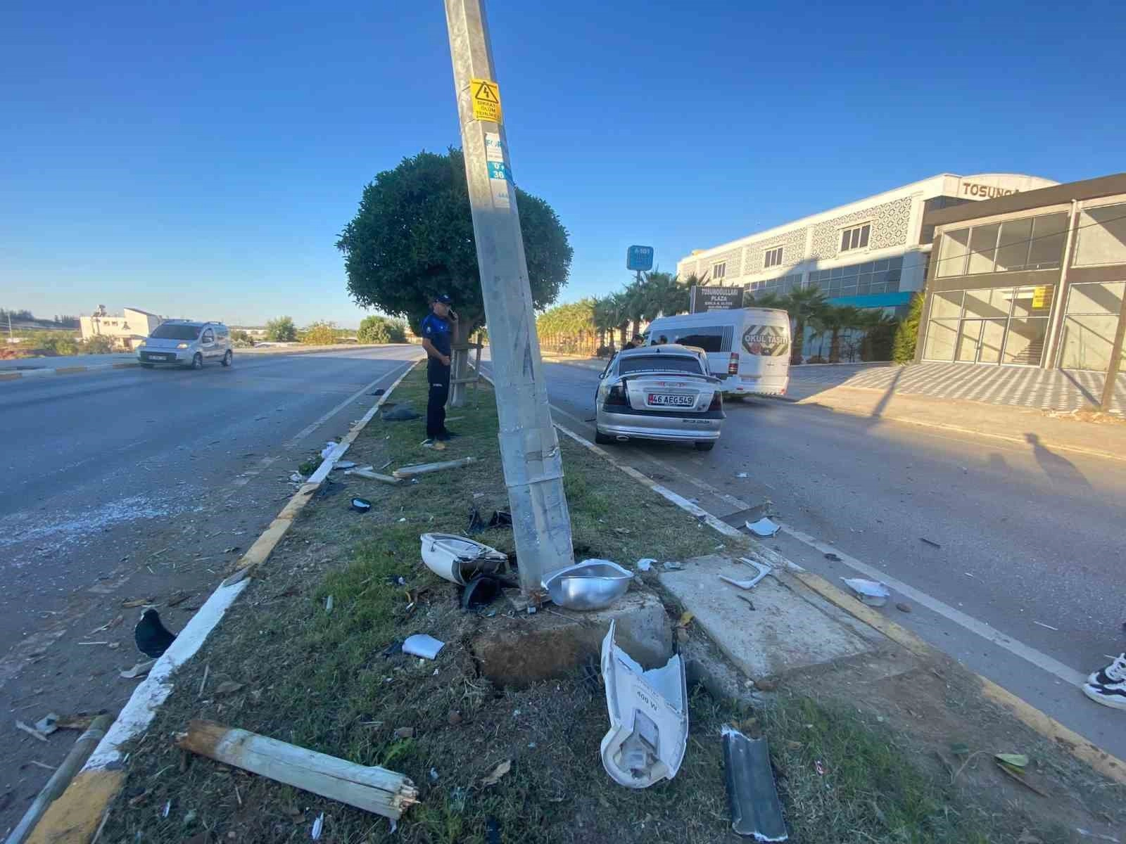 Antalya'nın Serik ilçesinde otomobil sürücüsü, yoldan refüje çıktığı sırada ağaçları devirdi, aydınlatma direğine çarparak durabildi. Kazada 1 kişi yaralandı.