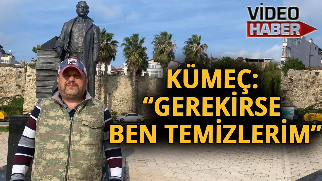 Kümeç, 22 Ekim’de parkta dolaşırken Sabahattin Ali heykelinin başının kuş pisliğiyle kaplı olduğunu gördüğünü belirterek, “Hayatta en kötü şey ‘banane’ ve ‘sanane’ demek. 22 Ekim’de buralarda dolaşırken sabah baktım ki Sabahattin Ali’nin kafasını kuş pislemiş. Sosyal medyamda paylaştım. Bu neticede bir iz Sinop’ta bir anı bırakmış. Bu şekil pis olmasını mantıklı bulmuyorum,” dedi.