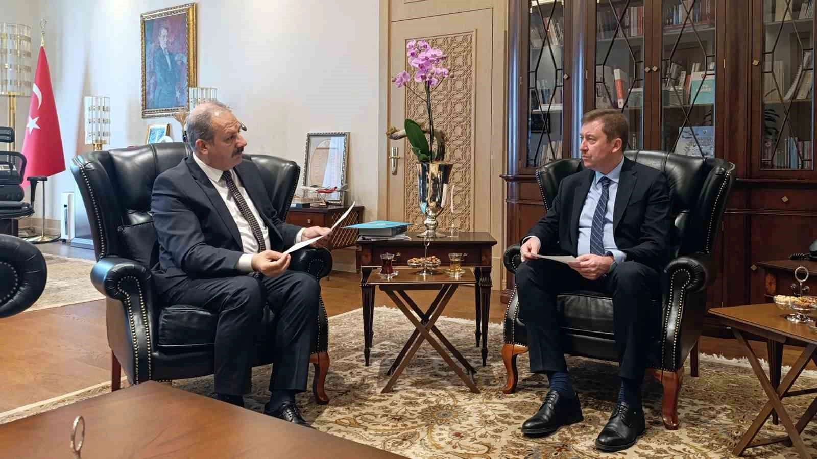 Sağlık-Sen Genel Başkanı Mahmut Faruk Doğan, beraberindeki heyetle birlikte Cumhurbaşkanlığı İdari İşler Başkanı Hakkı Susmaz'ı ziyaret etti.