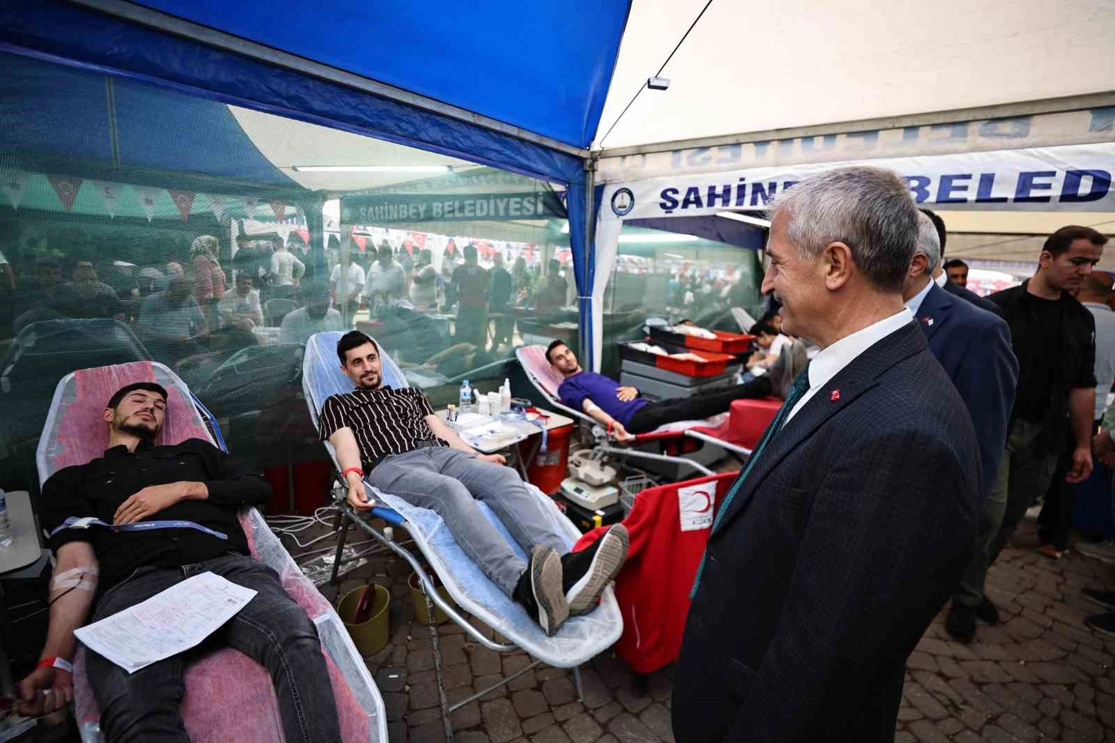 Kan bağışı kampanyasında konuşan Şahinbey Belediye Başkanı Mehmet Tahmazoğlu, "Şahinbey Belediyesi olarak geleneksel hale getirdiğimiz 14 yıldan beri devam ettirdiğimiz kan bağışı kampanyamız bugünde 15 Temmuz Demokrasi Meydanı'nda devam ediyor. 2 gün sürecek kan bağışı kampanyamız. Geçen yıl kan bağışı kampanyamızda 12 bin 527 ünite kan toplandı. Bu yıl onun çok daha üzerinde kan bağışı bekliyoruz. Kan bağışı yapmak kendi sağlığımız içinde önemlidir. Aynı zamanda hiç tanımadığımız üç kişiye, hastaya çare oluyoruz. Bu da gayet güzel bir uygulama. Tüm vatandaşları kan bağışı yapmaya davet ediyorum" dedi.