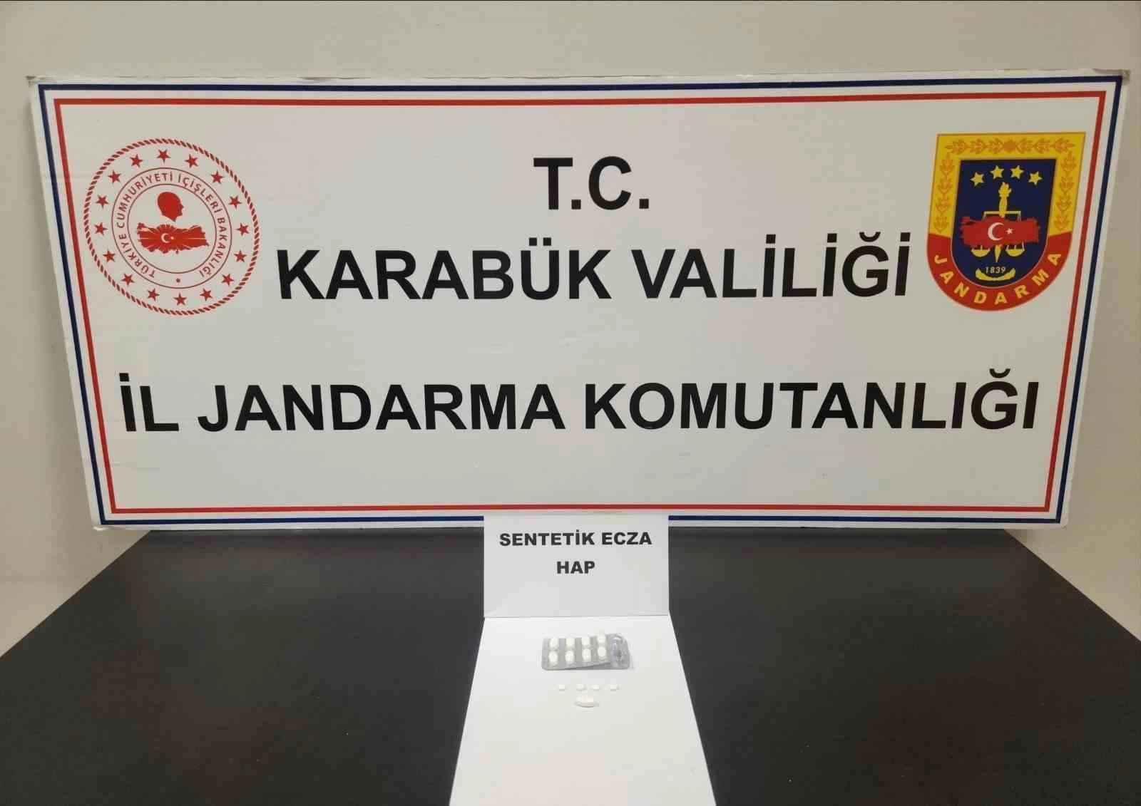 Karabük'te bir şahsın üzerinde 13 adet sentetik ecza hap ele geçirildi.