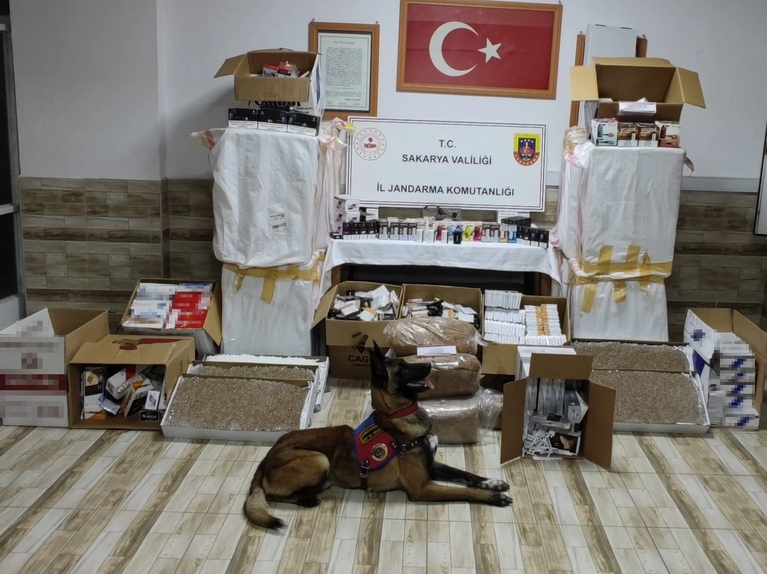 Sakarya İl Jandarma Komutanlığı, sorumluluk bölgesinde çalışmalarını sürdürüyor. Karasu ilçesinde bir şahsın evinde ve iş yerinde yapılan aramada 736 bin adet dolu makaron, 50 kilogram kıyılmış tütün, 105 adet elektronik sigara, 1 adet sigara sarma kağıdı ele geçirilirken, şüpheli gözaltına alındı.
