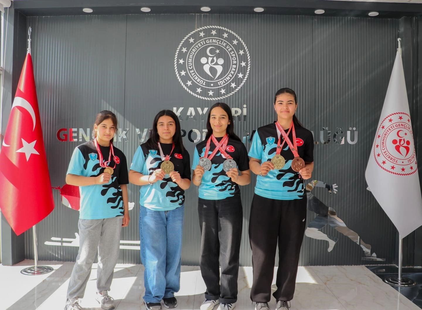 Kayseri'de yapılan Bilek Güreşi Milli Takım Seçmesi ve Türkiye Şampiyonası'nda şampiyon olan Ertuğrul Tacir Oğulları Ortaokulu sporcuları Huri Uçar, Leyla Dulda, Türkiye ikincisi olan Derya Kısa ve Türkiye dördüncüsü olan Gümüş Nur Çarkıt ile Antrenörleri Davut Gökdoğan Kayseri Gençlik ve Spor İl Müdürü Ali İhsan Kabakcı'yı makamında ziyaret ettiler.