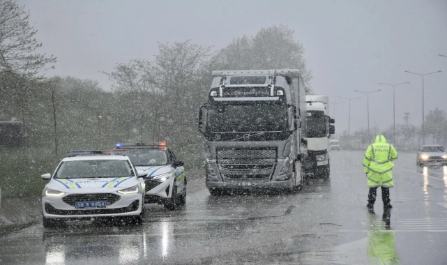 İl Emniyet Müdürlüğü Bölge Trafik Denetleme Şubesi ekipleri de trafiğin güvenli ilerlemesi için çalışmalarını sürdürüyor.