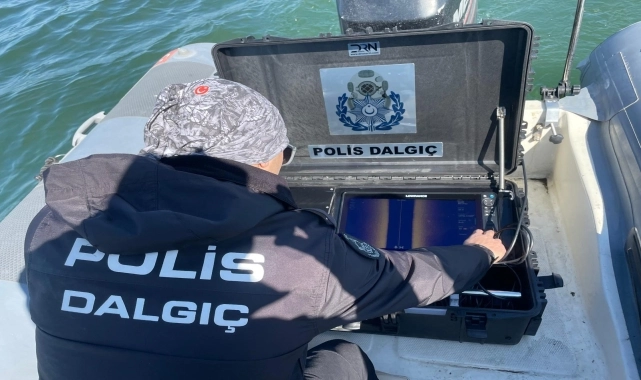 Teknenin bulunduğu bölgede yanal taramalı sonar cihazı ile Sevgili'ye ait iz aradı.