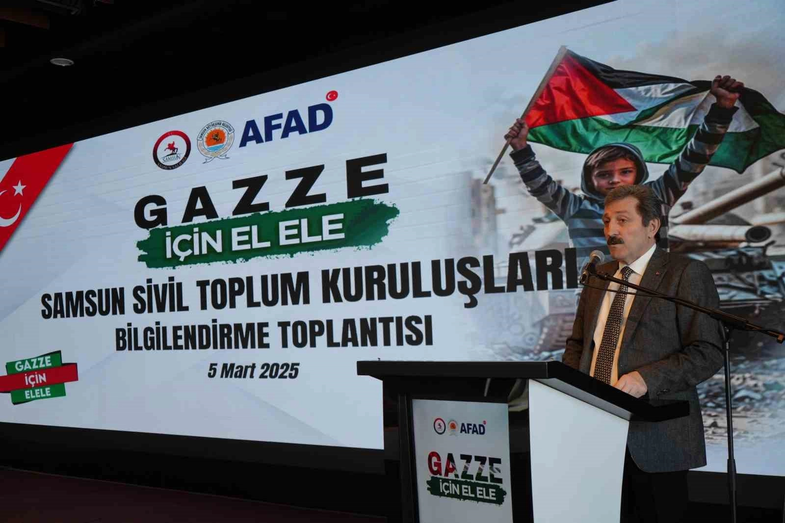 Samsun Valisi Orhan Tavlı, "Tüm zorluklara rağmen vatanlarını müdafaa eden, zulme baş eğmeyen ve onuruyla direnen Filistinli kardeşlerimize uzatacağımız yardım eliyle Gazze'yi Ramazan ayında da yalnız bırakmayacağız" dedi.