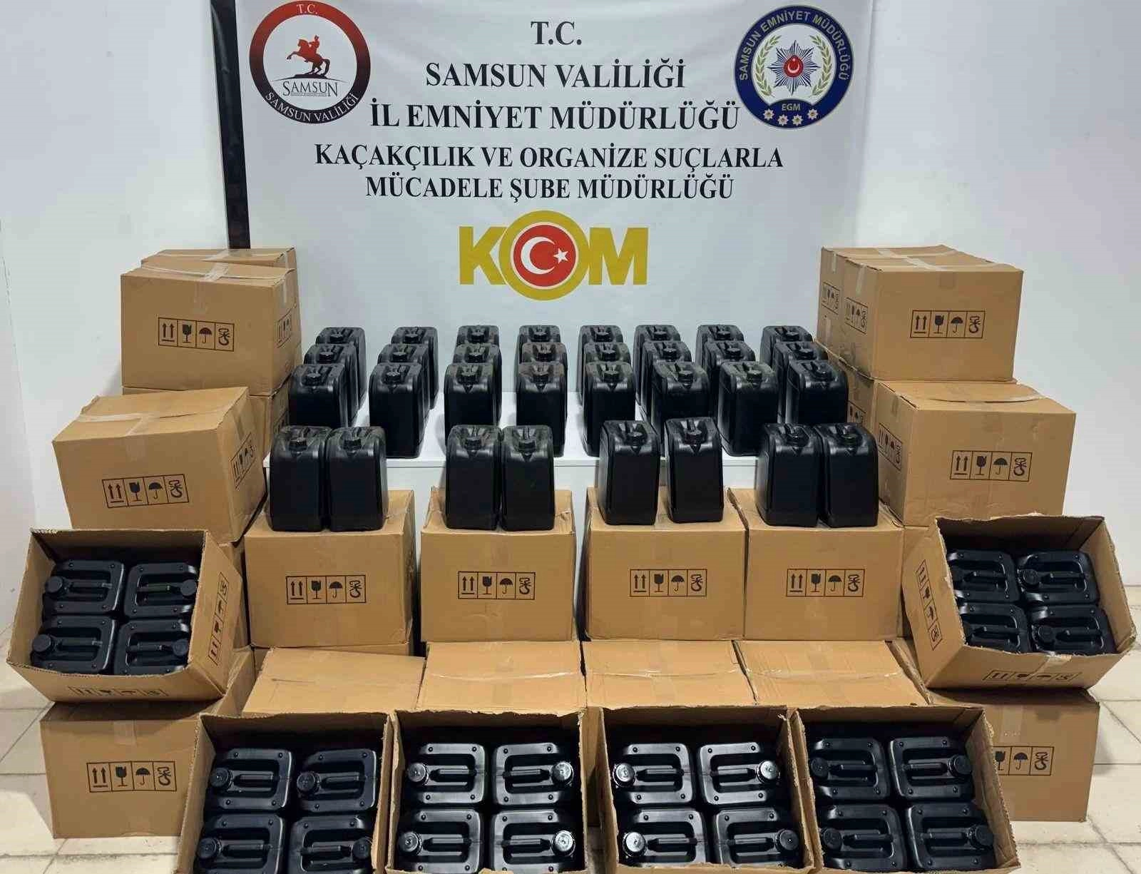 Samsun'da polis ekipleri tarafından düzenlenen operasyonunda 1 ton etil alkol ele geçirildi.