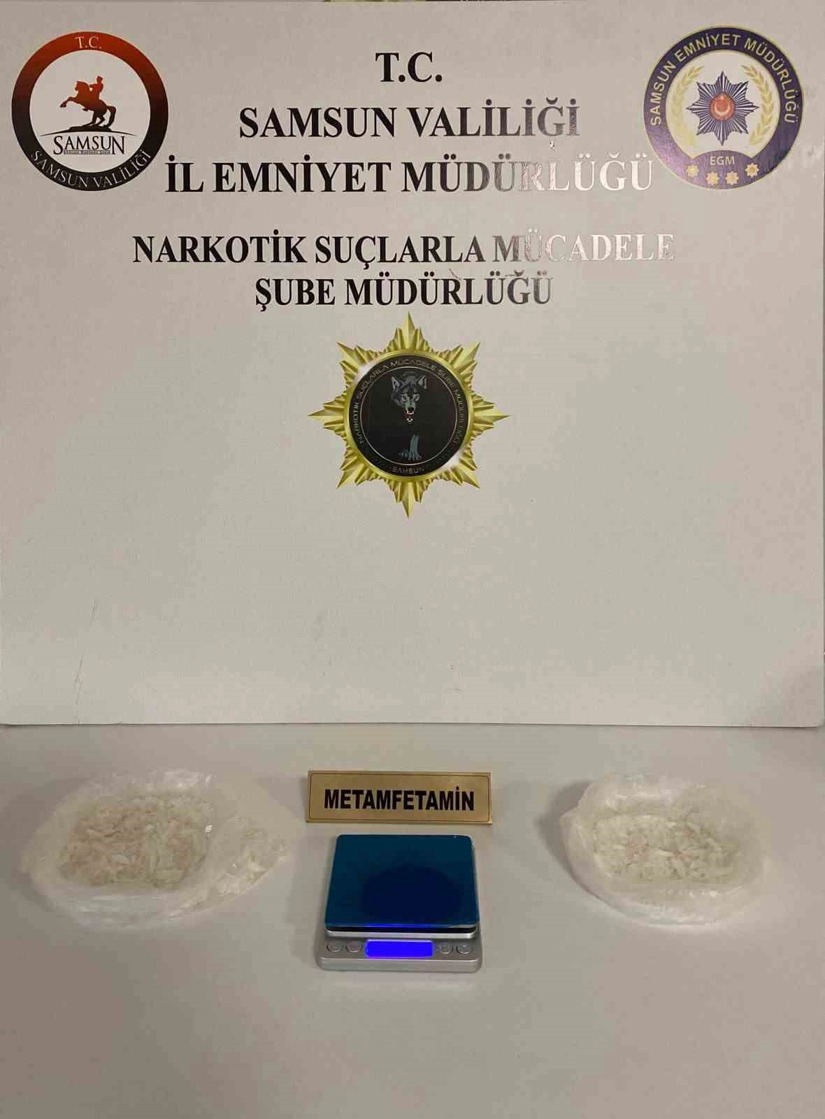 Samsun'da polisin takibi sonucu bir işyerinde yapılan aramada 232,86 gram metamfetamin ve 1det hassas terazi ele geçirildi.