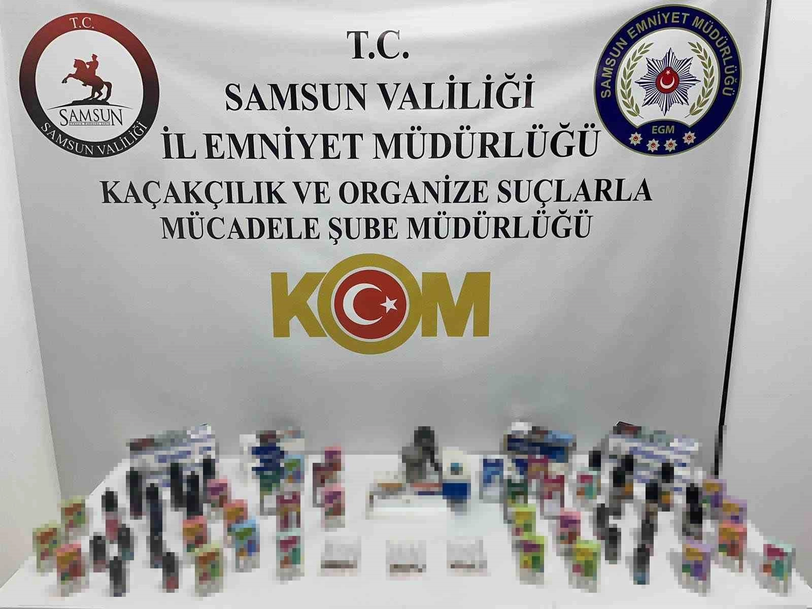 Samsun'da polis tarafından makaron sigara, elektronik sigara ve sigara sarma makinesi ele geçirildi.