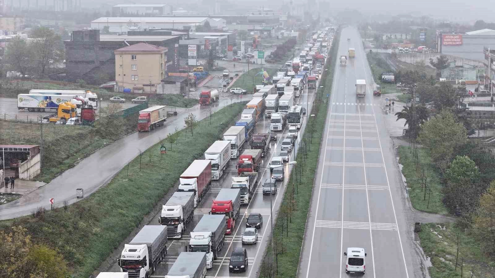 Yoğun tipi nedeniyle sürücüler ilerlemekte zorlanırken, Samsun-Ankara karayolunda zaman zaman ulaşım durdu. Karayolları ekipleri, ulaşımın yeniden sağlanması için yol açma çalışmalarını sürdürüyor. Ulaşımın aksaması nedeniyle tırlar bekletiliyor. Toybelen mekvisinde bekletilen tırlar 2 kilometrelik kuyruk oluşturdu.