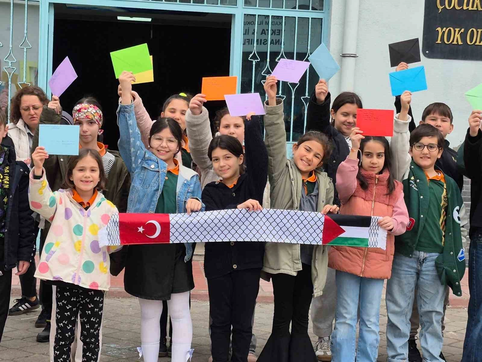 Minik öğrenciler, öğretmenleriyle birlikte UNICEF Türkiye Temsilciliği'ne hitaben toplam 55 mektup kaleme aldı. Mektuplarda, savaş mağduru çocukların yaşadığı zorluklara dikkat çekilerek, "Kan ve gözyaşı son bulsun, çocuklar okula gitsin, sokaklarda özgürce oynasın" çağrısında bulunuldu.