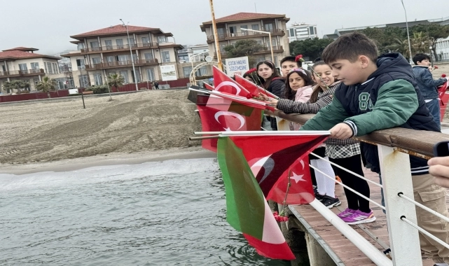 Atakum ilçesindeki Halk İskelesi'nde yapılan etkinlikte öğrenciler, Filistinli akranları için Karadeniz'e karanfil bıraktı.
