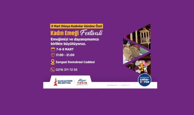 8 Mart Dünya Kadınlar Günü kapsamında kadınlarımızın el emeği göz nuru ürünlerinin sergileneceği "Kadın Emeği Sergisi" Sarıgazi Demokrasi Caddesi'nde 7-9 Mart tarihleri arasında ziyaretçilerine kapılarını açacak.3 gün boyunca saat 17.00/21.00 saatleri arasında açık olacak sergide Sancaktepe'li kadınların el emeği göz nuru ürünleri beğeniye sunulacak.