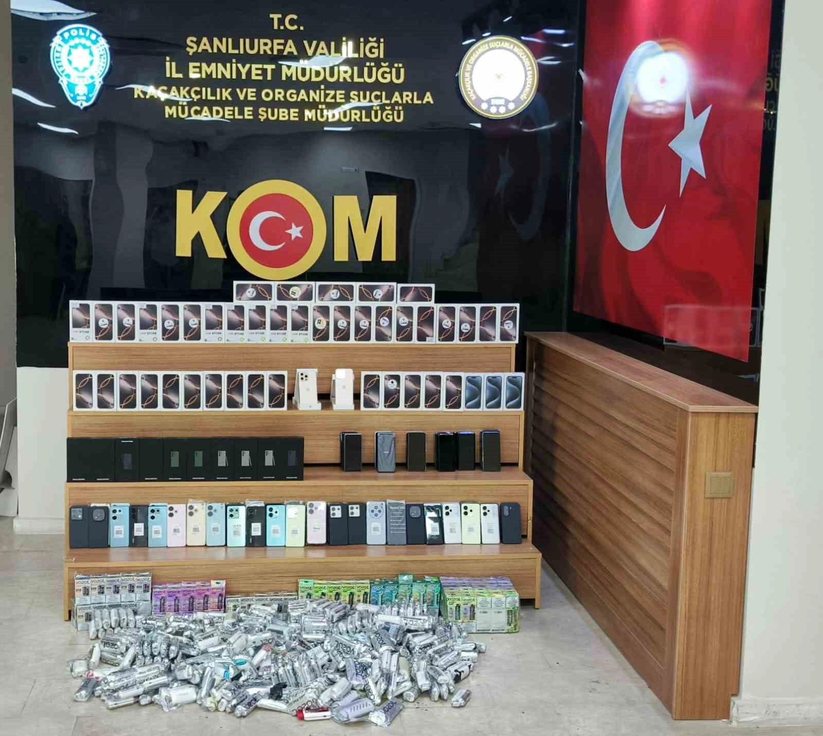 Şanlıurfa İl Emniyet Müdürlüğüne bağlı ekipler, kaçakçılıkla mücadele çalışmalarını sürdürüyor. Bu kapsamda düzenlenen operasyonda piyasa değeri 7 milyon 400 bin TL 139 adet gümrük kaçağı cep telefonu ile 483 gümrük kaçağı elektronik sigara ele geçirildi. Olaya ilişkin 2 şüpheli şahıs yakalanarak gözaltına alındı.