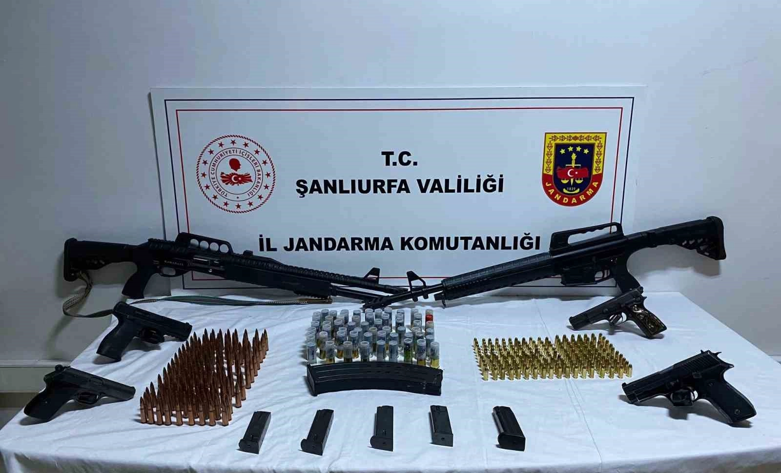 Şanlıurfa İl Jandarma Komutanlığı'na bağlı ekipler, Haliliye ilçesindeki 4 adrese operasyon düzenledi. Gerçekleştirilen operasyonda 7 ruhsatsız tabanca, 3 ruhsatsız av tüfeği, 240 farklı çap ve ebatlarda fişek, 114 gram metamfetamin, 156 gram bonzai, 4 gram esrar, 63 uyuşturucu hap, 2 hassas terazi, 5 uyuşturucu içme aparatı ele geçirildi. 5 şüpheli gözaltına alındı. Şüpheliler işlemleri için karakola götürüldü.