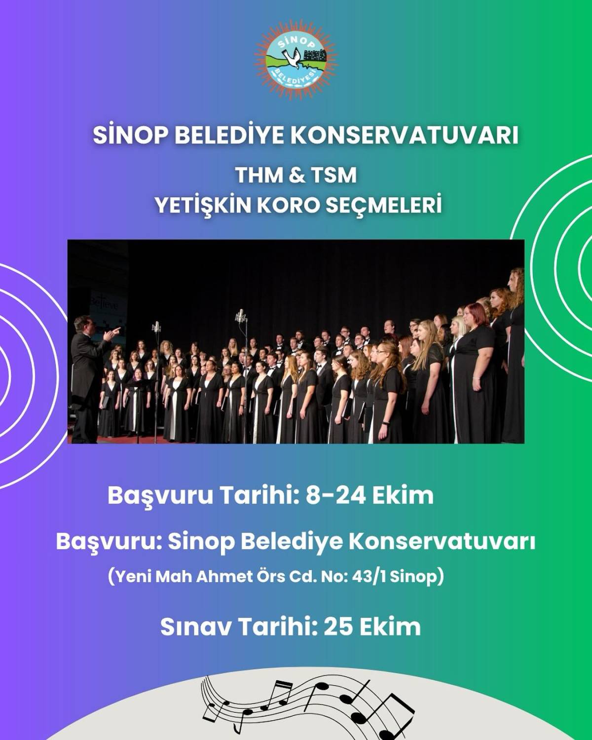 Seçmelere başvurular 8 - 24 Ekim tarihleri arasında Sinop Belediye Konservatuvarı'na şahsen yapılabilecek. Müzik tutkunları için büyük bir fırsat sunan bu organizasyon, hem halk müziğine hem de sanat müziğine ilgi duyan yetişkinleri koro çalışmalarına katılmaya davet ediyor.
