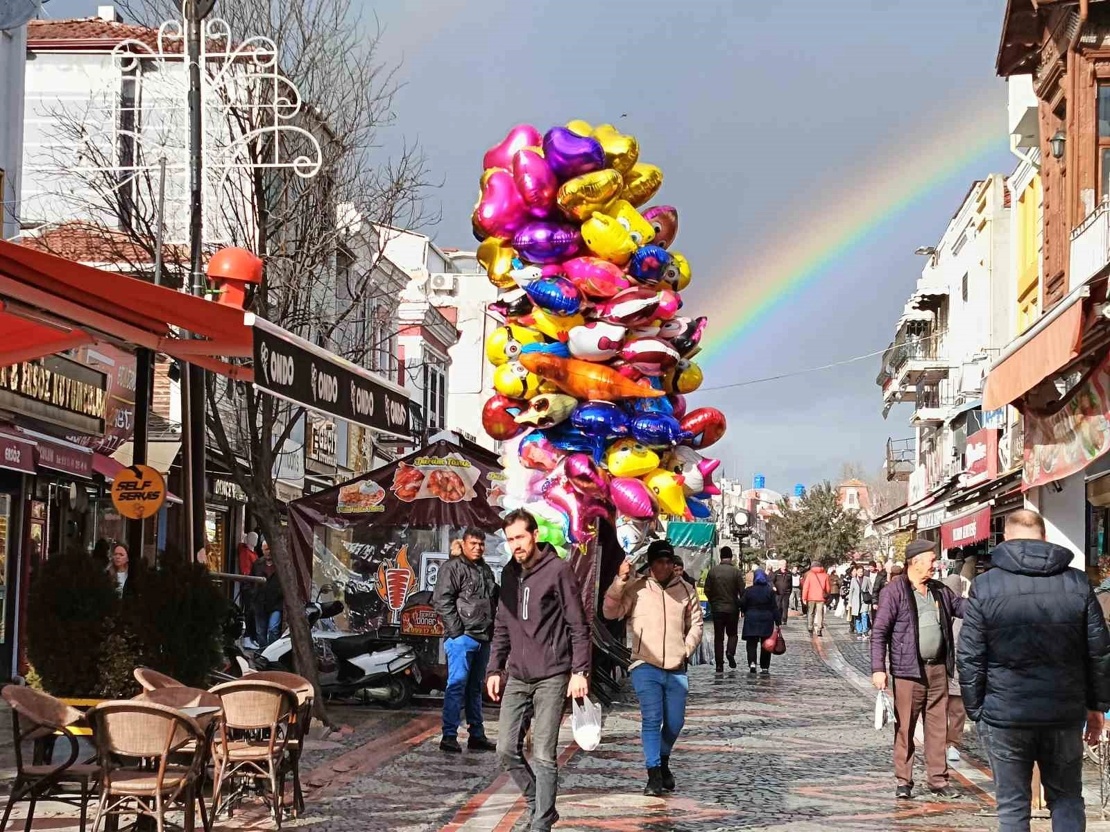 İlkbahar ve yaz aylarında daha çok görülen gökkuşağı, bu kez kendini kış ortasında gösterdi. Mevsim gereği yurdun birçok bölgesinde karlı ve soğuk hava etkili olurken, Edirne adeta dört mevsimi bir arada yaşadı. Kentte etkili olan yağmurun da etkisiyle bir anda gökyüzünde oluşan manzara görenleri hayrete düşürdü. Öğleden sonra kısa süreli yağan yağmurun ardından oluşan gökkuşağı çevredekiler tarafından ilgiyle izlendi. Vatandaşlar bu eşsiz manzarayı telefonlarına kaydetti.