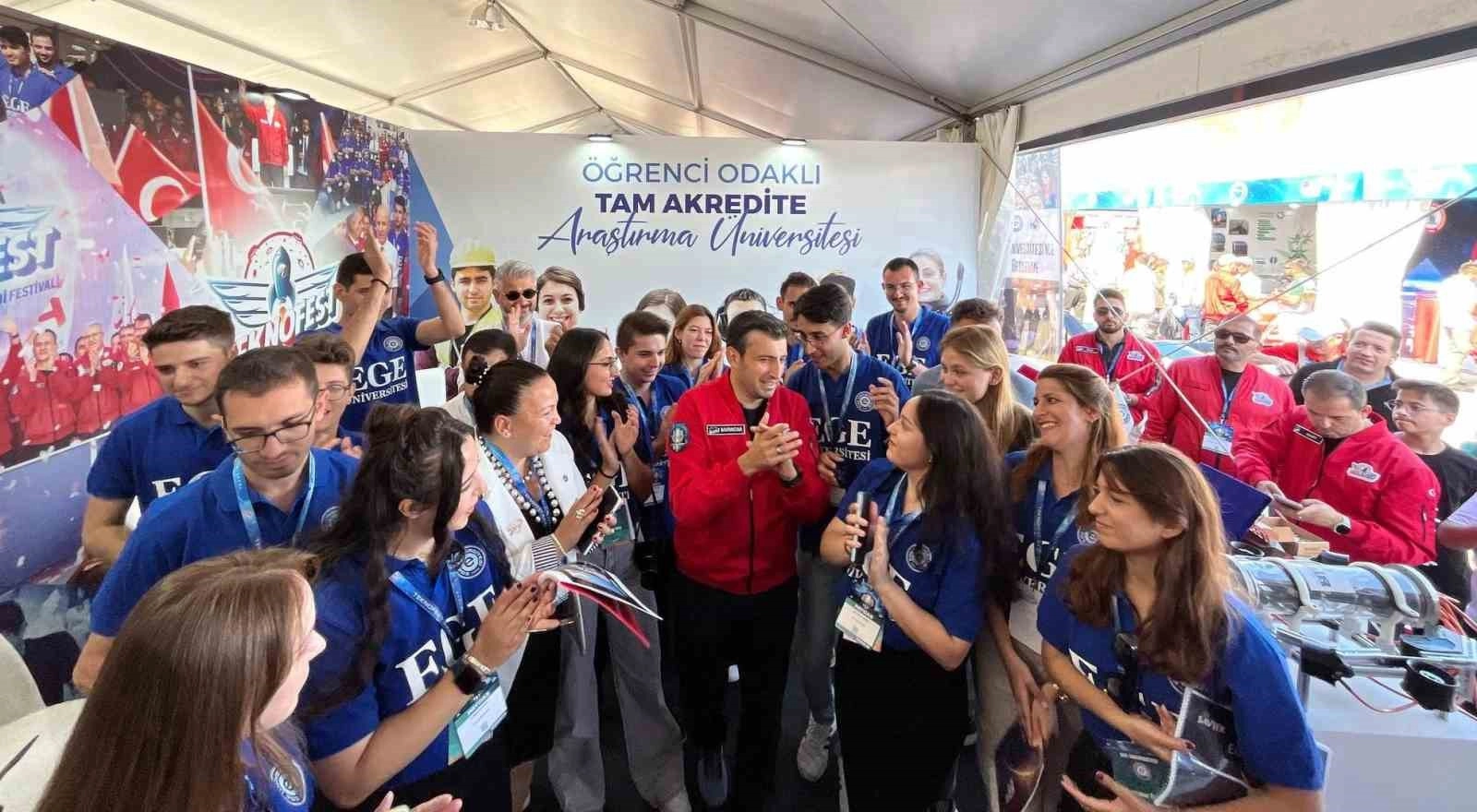 Ege Üniversitesi Rektörü Prof. Dr. Necdet Budak, "Adana'da kapılarını ziyaretçilerine açan dünyanın en büyük Havacılık, Uzay ve Teknoloji Festivalinde; tam akredite, öğrenci odaklı, öncü araştırma üniversitemizin standı yoğun ilgi görmeye devam ediyor. Festivalin ikinci günü üniversitemiz standında TEKNOFEST Yönetim Kurulu Başkanı Sayın Selçuk Bayraktar'ı ağırladık. Proje takımlarımızda yer alan akademisyenlerimiz ve öğrencilerimizle projeleri değerlendiren Selçuk Bayraktar, Millî Teknoloji Hamlesi vizyonuyla hazırlanan projelerimize büyük ilgi gösterdi. Yurt içinden ve dışından, 7'den 70'e herkesin teknolojiyle buluşmasına imkânı sunan TEKNOFEST'e katkılarından dolayı Sayın Bayraktar'a şükranlarımı sunuyorum. Festivalde, proje takımlarımızın geliştirdiği yapay zekâ, otonom sistemler, savunma teknolojilerine yönelik projeler havacılık ve teknoloji meraklılarının ilgi odağı olması bizlerde ayrı bir motivasyon oluşturdu" dedi.