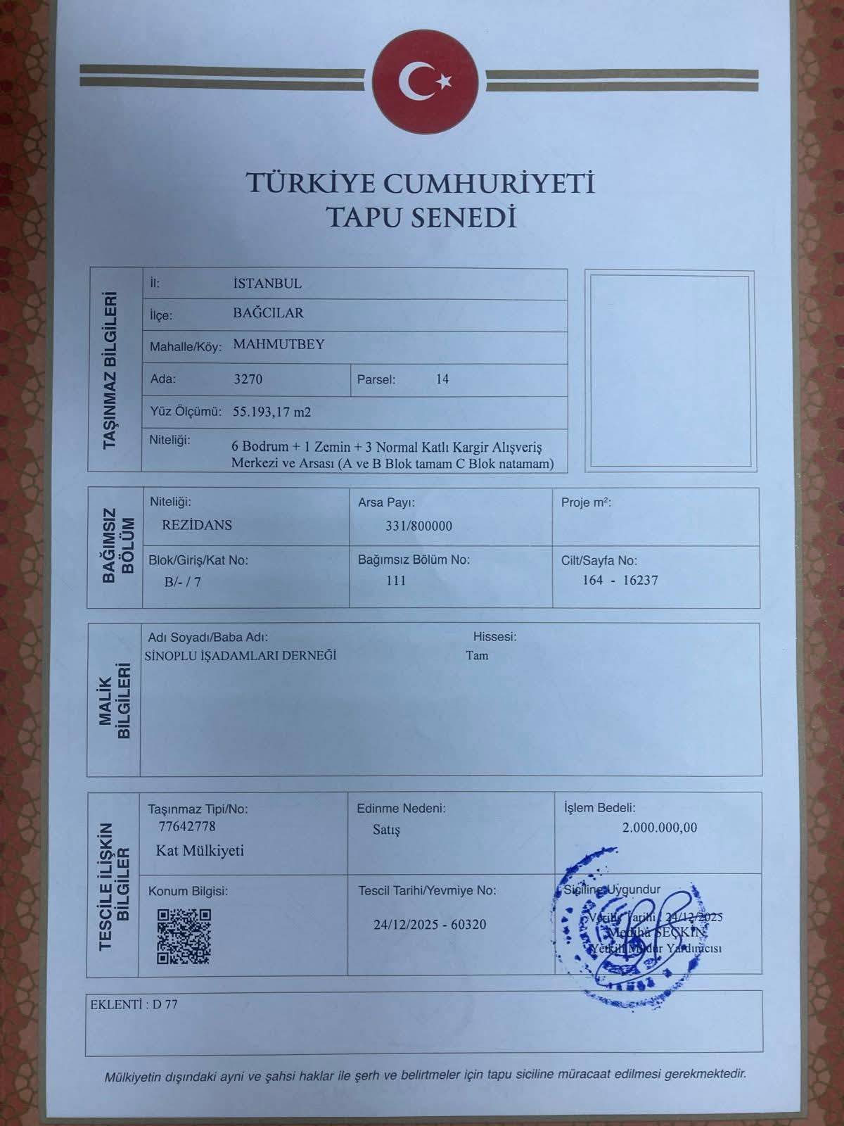 Yapılan resmi işlemlerin tamamlanmasının ardından, SİAD Genel Merkezi’nin tapusu dernek tüzel kişiliği adına tescil edildi.