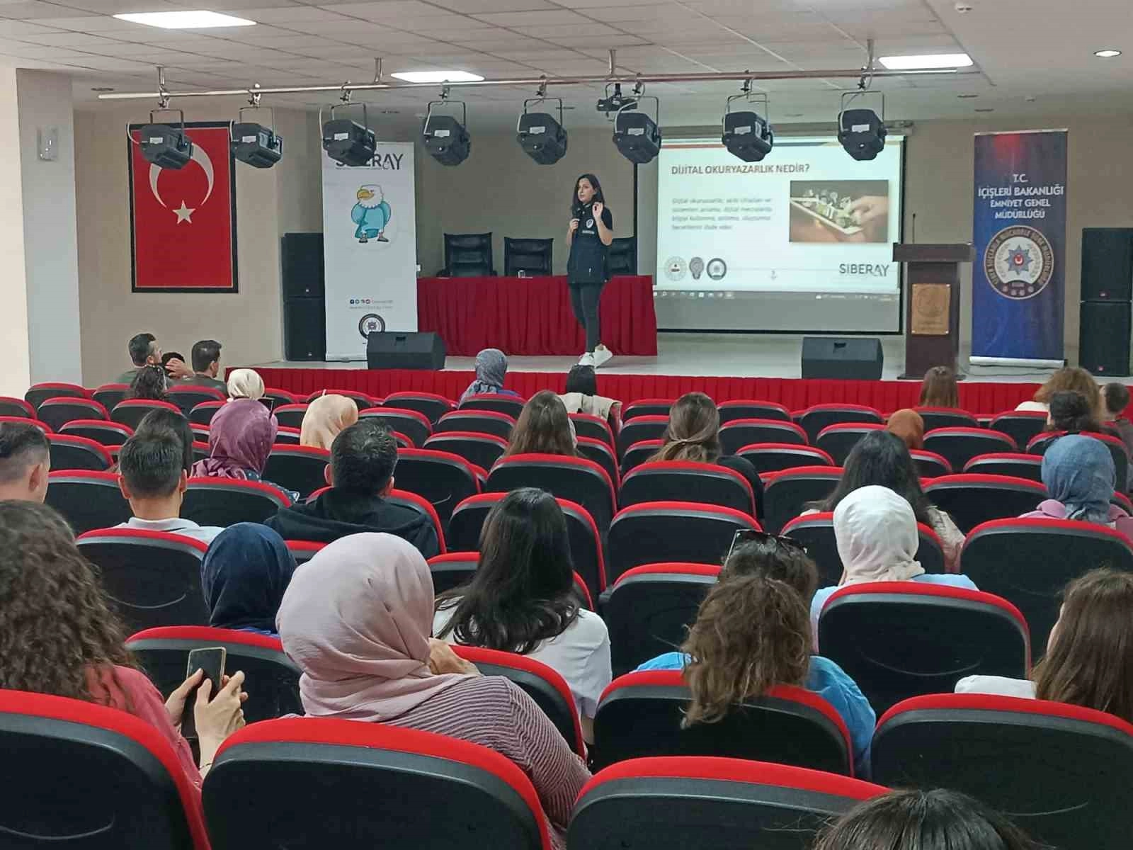 Siber Suçlarla Mücadele Şube Müdürlüğünde görevli polis memurları tarafından "Siberay Güvenlik Semineri" kapsamında, güvenli internet kullanımı, çevrimiçi yasadışı bahis, dijital okuryazarlık, teknoloji bağımlılığı ve siber zorbalık hakkında bilgilendirmeler yapıldı. Sunumlar yapılıp, siber suç tanımı, siber suçlarla mücadele yöntemleri gibi başlıklarda rehber öğretmenlere açıklayıcı bilgiler aktarıldı.